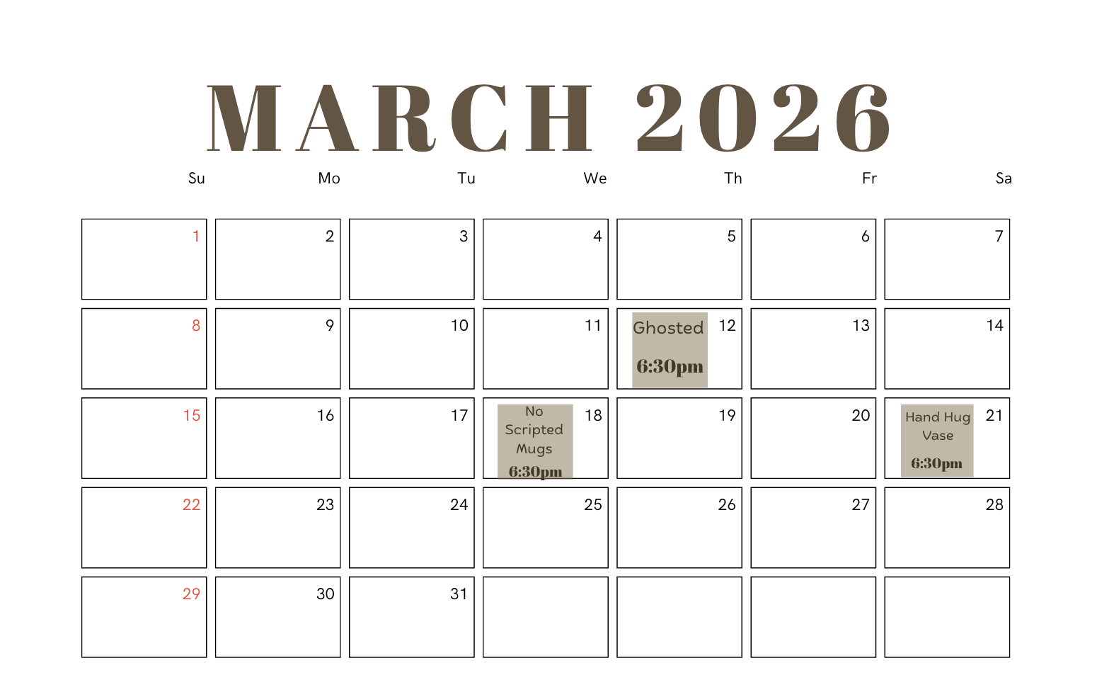 Whether you’re on the wheel or building by hand, you’ll be guided step-by-step through a clay project designed for beginners. No experience needed. No pressure to be perfect.